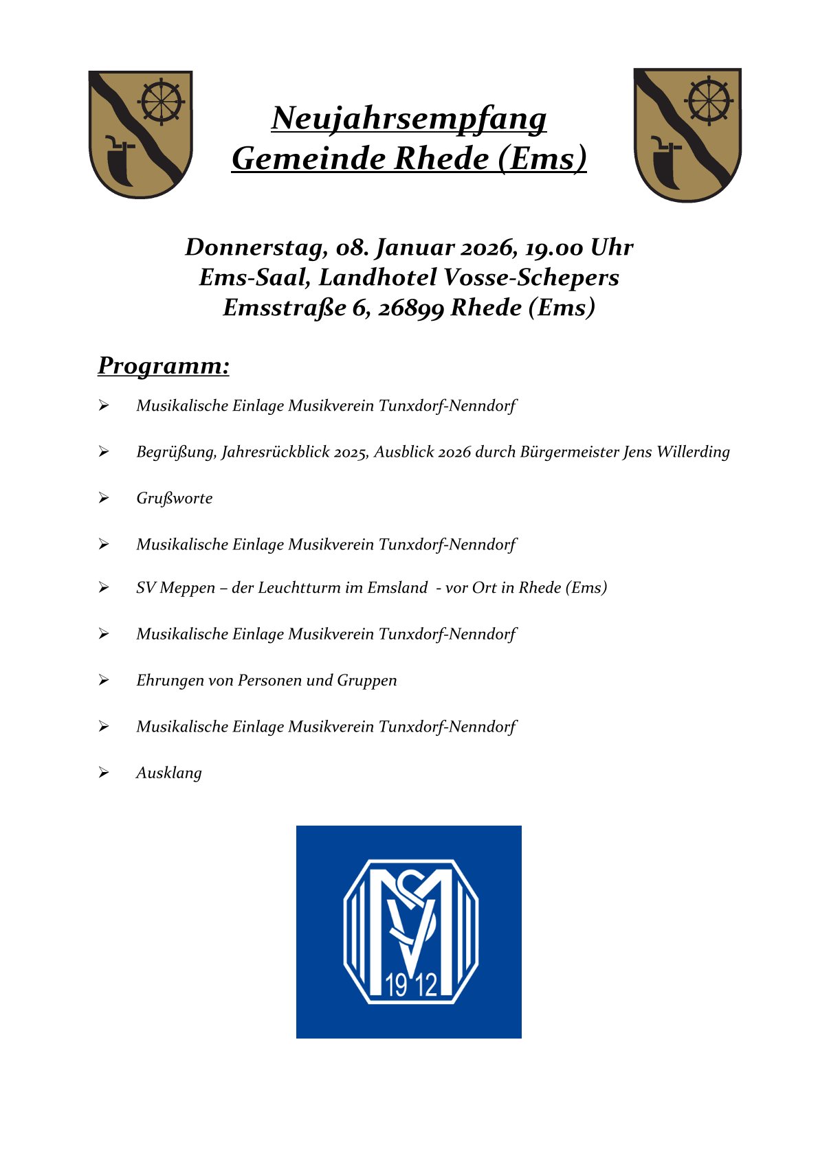 In der nächsten Woche findet der Neujahrsempfang der Gemeinde Rhede (Ems) statt.
