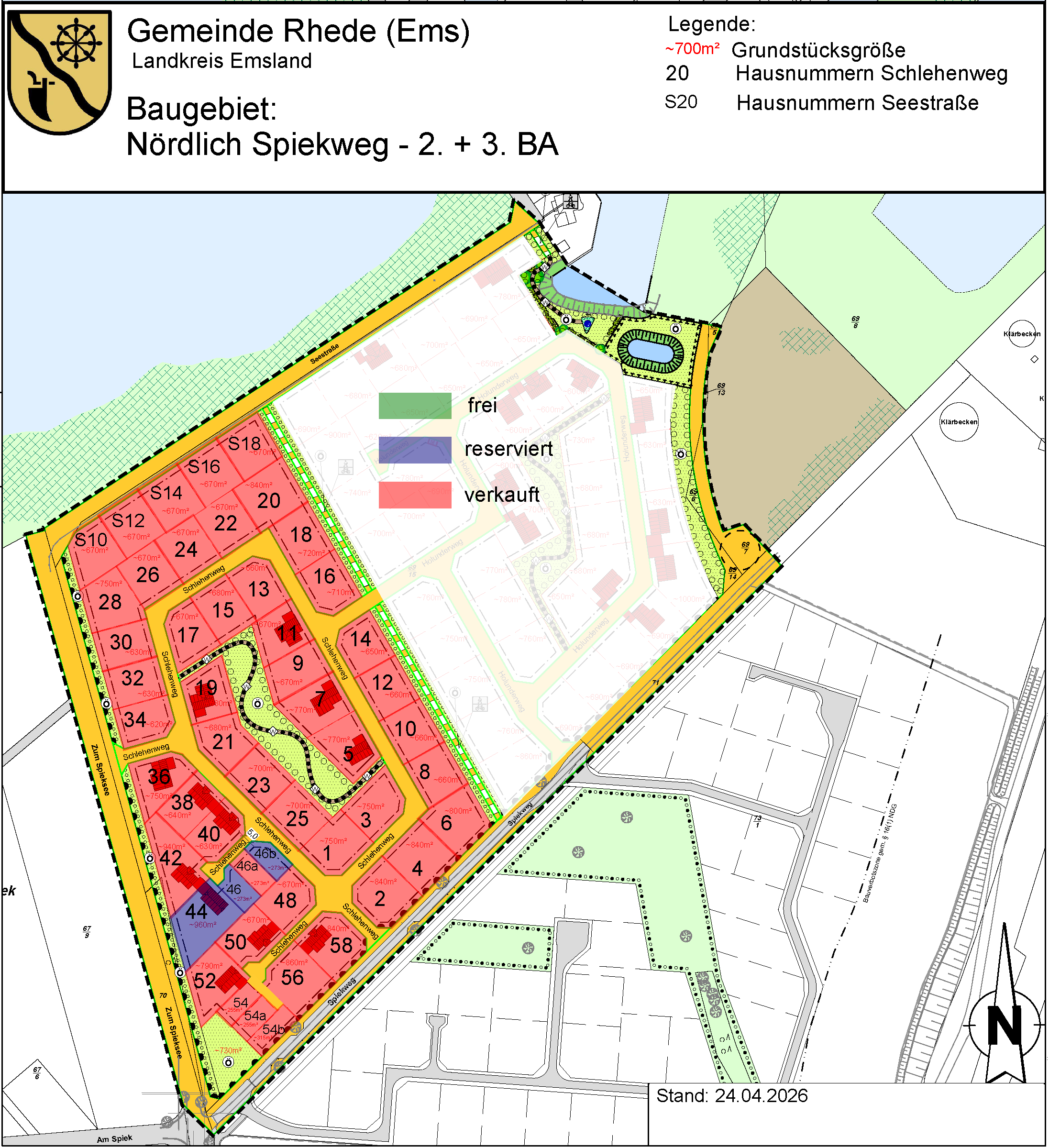 Grundstückskaufpreis: Grundstücke 1-34 = ab 65,– € je m² (inklusive Erschließungskosten)