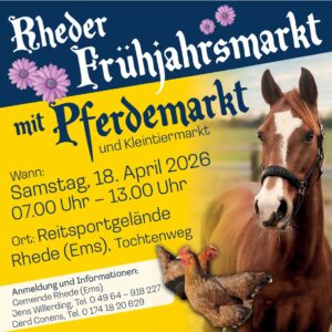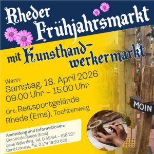 Gesund und munter durchs FrühjahrWir beginnen den Nachmittag mit Kaffee/Tee und Kuchen und dann geht es weiter mit dem Motto " Gesund und munter durchs Frühjahr " Mit Tipps, Tricks und kleinen Snacks Unkostenbeitrag wird zwischen 7,00€ und 10,00€ sein. Anmeldung bis spätestens 27.02.26 Bei Sabine Tel. 04964/6058865 oder 017670160845 Angela Ahrens Tel. 04964/227 Näheres wird noch bekannt gegeben |